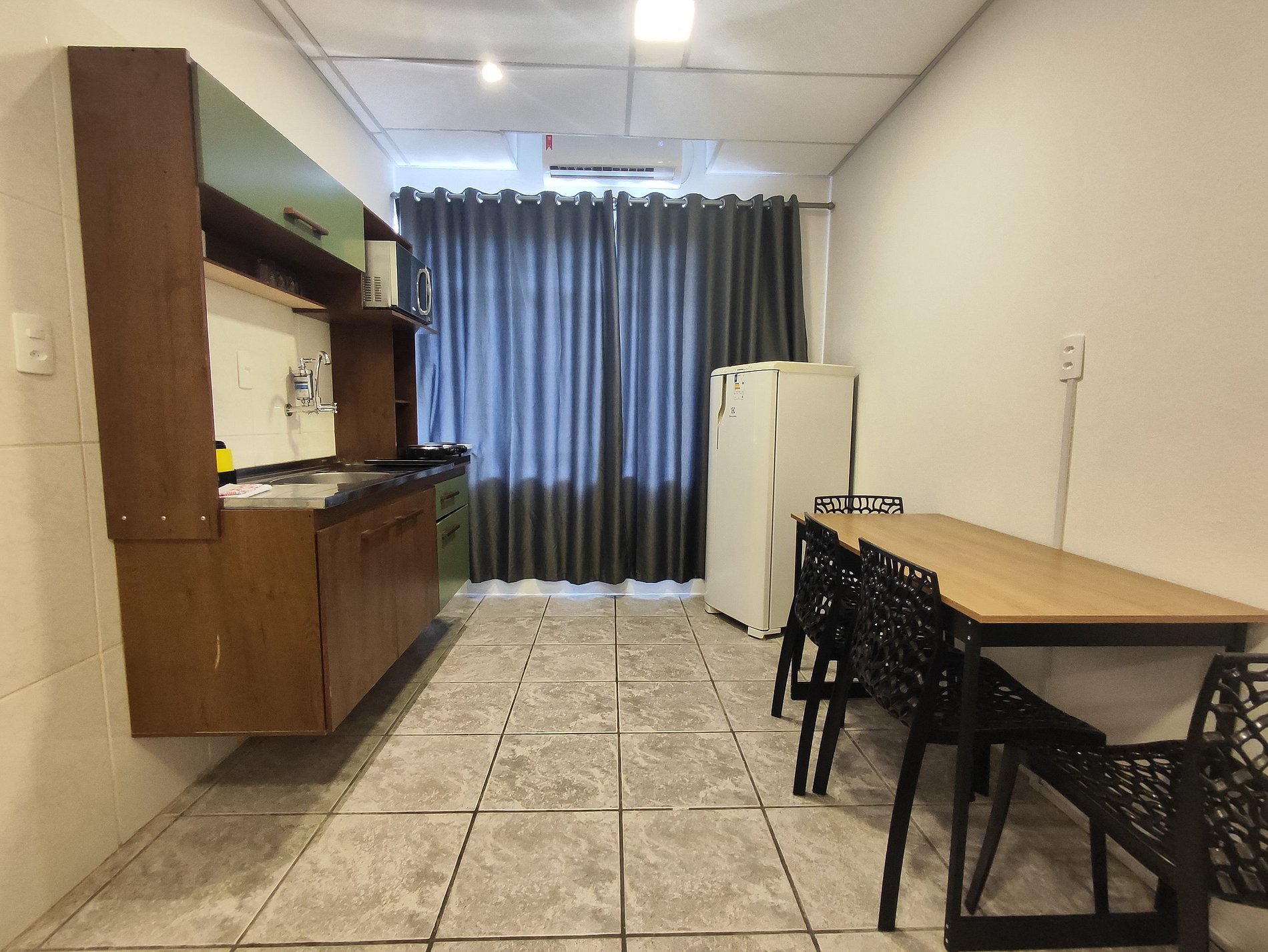 Well equipped studio for up to 4 people. We are on a safe street, close to the center of Blumenau (4 km) and Vila Germânica (2 km). The room has a standard double box-spring bed and two single box-spring beds, Smart TV, kitchen with electric stove, microwave, refrigerator and other utensils for making your meals. Bathroom is private and has towels. Wifi included. On-site parking, open in front of the building and covered in an attached parking lot. It has hot/cold air conditioning.