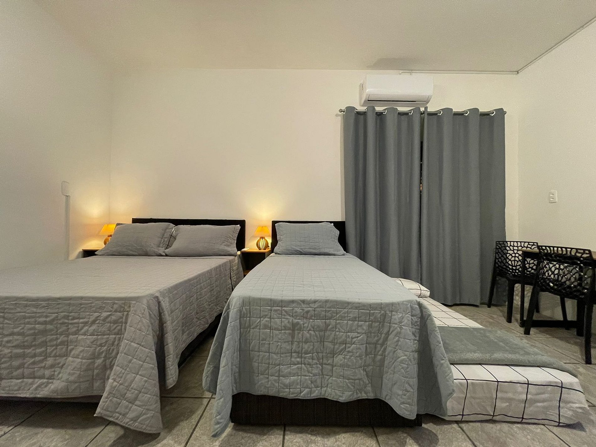 Well equipped studio for up to 4 people. We are on a safe street, close to the center of Blumenau (4 km) and Vila Germânica (2 km). The room has a standard double box-spring bed and a single box-spring bed, Smart TV, kitchen with electric stove, microwave, refrigerator and other utensils for making your meals. Bathroom is private and has towels. Wifi included. On-site parking, open in front of the building and covered in an attached parking lot. It has hot/cold air conditioning.