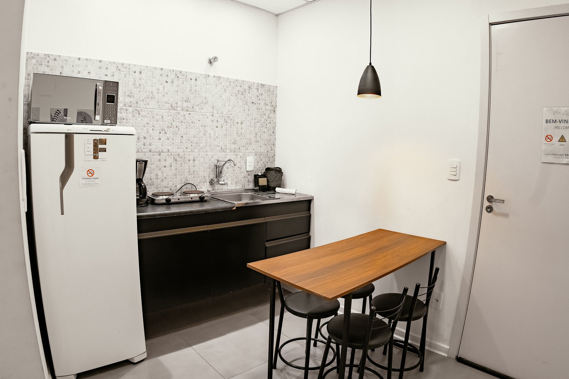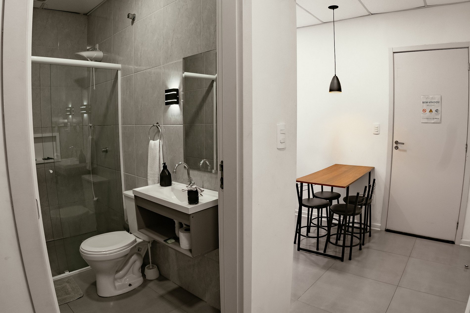 A comfortable and thoughtfully designed space to offer a peaceful stay. Ideal for families, small groups, or business travelers seeking practicality, comfort, and a great location. The space: The studio is fully equipped, cozy, and functional. It has a standard double bed and two single box beds, comfortably accommodating up to 4 people. The room features hot and cold air conditioning, Wi-Fi, a Smart TV with Fire TV Stick (access to streaming services such as Prime Video, Disney+, and YouTube), as well as bedside tables with lamps and a closet-style wardrobe with hangers. The kitchen is equipped with an electric stove, microwave, refrigerator, coffee maker, and essential utensils for meal preparation. The space also offers complete bedding, including sheets, pillowcases, pillows, bedspread, and plush blanket. The bathroom is private and includes bath and face towels, as well as complimentary 2-in-1 shampoo and soaps. The studio is located on the first floor (accessible by stairs) and has a shared laundry room with a washing machine, dryer, ironing board, and iron. Location: Located in the Velha neighborhood, in a quiet residential area, the studio is about 4 km from the center of Blumenau and approximately 2 km from Vila Germânica, where the city's main events take place, such as Oktoberfest, fairs, shows, and seasonal attractions. Nearby, you will find a bakery, pharmacy, supermarket, and banks within a few minutes' walk. Guest Access: Check-in: 2 PM to 11 PM (please inform us of your arrival time in advance) Check-out: until 11 AM Other Notes: • Parties are not allowed • Smoking is prohibited inside the property • Only guests included in the reservation are allowed to stay • Free parking on site (spaces in front of the building and covered options on nearby land) • Reception available from 8 AM until after midnight, with on-site convenience store offering drinks, food and basic items • Pets are welcome (pet friendly) - free of charge