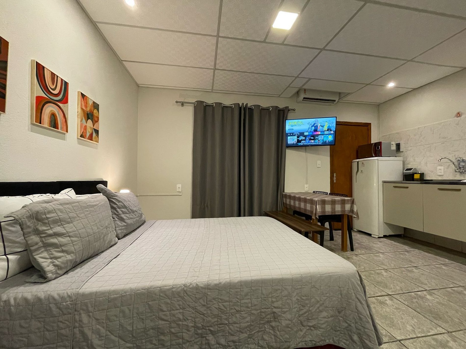 Studio well equipped for up to 4 people. We are on a quiet, safe street, close to the center of Blumenau (4 km) and Vila Germânica (2 km). The room has a standard double box-spring bed and a single box-spring bed, TV, kitchen with electric stove, microwave, refrigerator and other utensils to make your meals on site in peace. The bathroom is private and has bath and face towels. Wifi included. On-site parking. This apartment does not have air conditioning