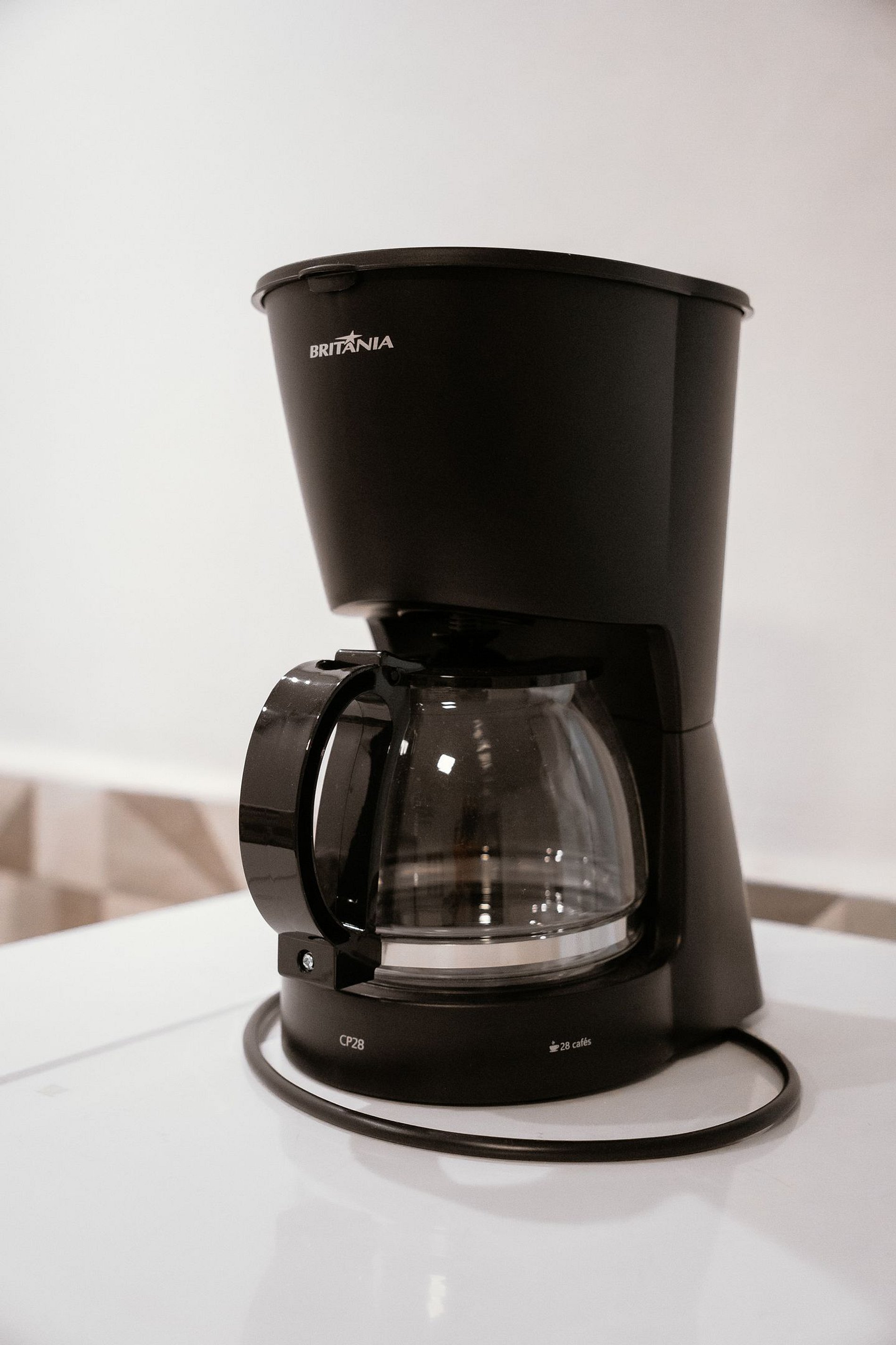 A cozinha é equipada com fogão elétrico, micro-ondas, geladeira, cafeteira e utensílios essenciais para o preparo de refeições. O espaço também oferece roupa de cama completa, incluindo lençóis, fronhas, travesseiros, cobre-leito e manta plush.