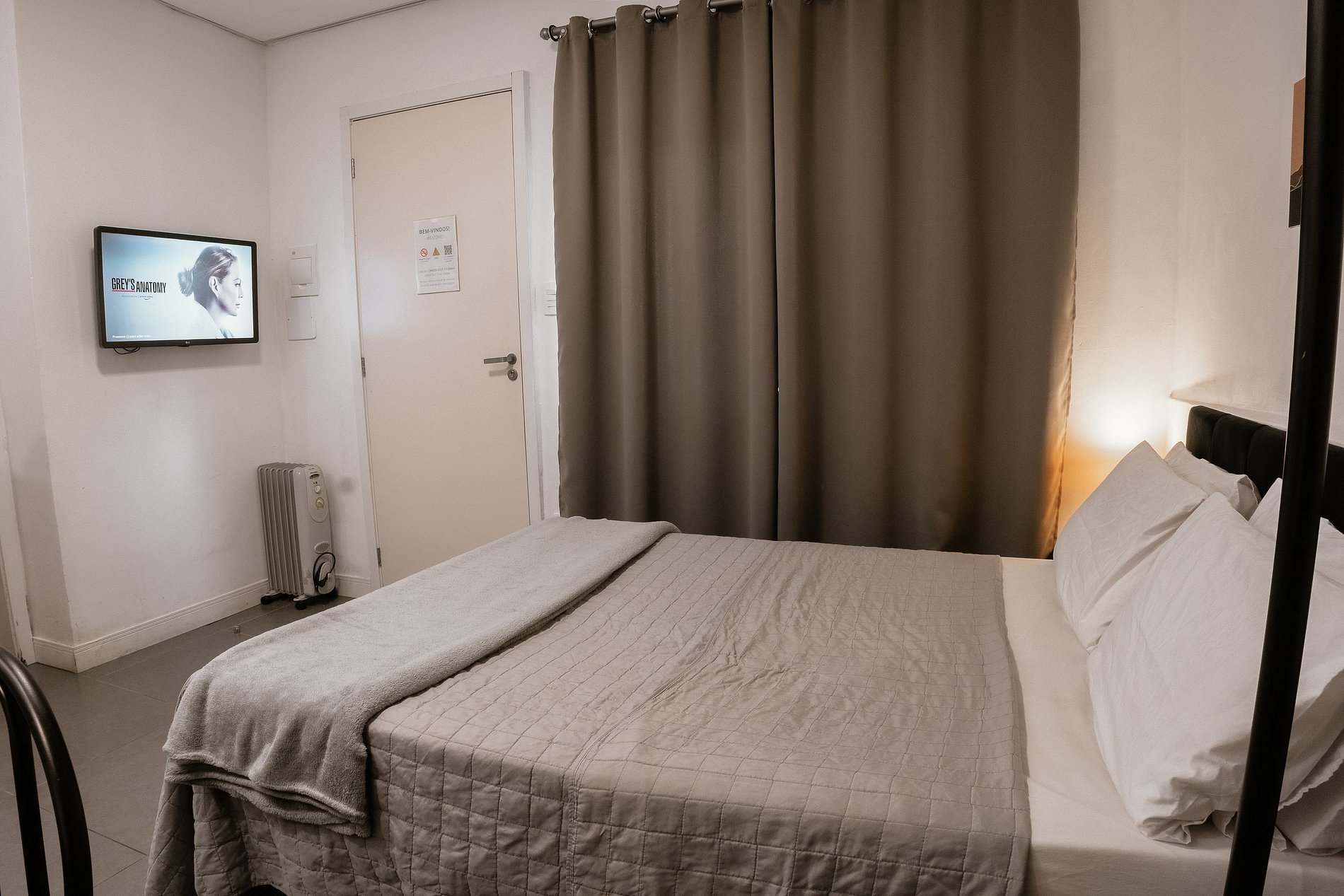 O Studio Urbano é completo, aconchegante e funcional. Conta com uma cama de casal padrão, acomodando confortavelmente até 2 pessoas. O ambiente dispõe de ar-condicionado quente e frio , Wi-Fi e Smart TV com Fire TV Stick (acesso a streaming como Prime Video, Disney+ e YouTube), além de mesa de cabeceira com abajur e armário estilo closet com cabides.