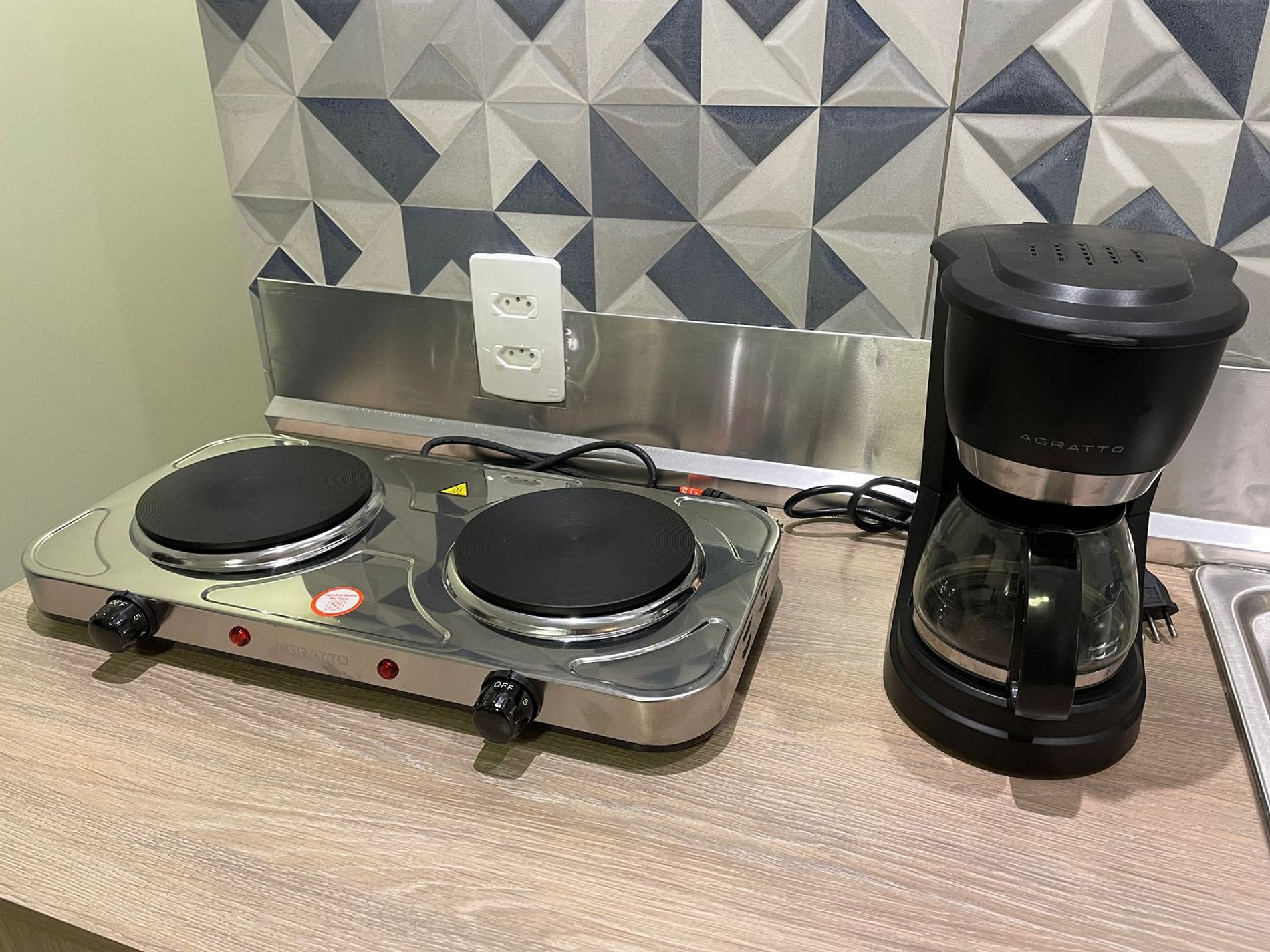 A cozinha conta com fogão elétrico, microondas, geladeira, cafeteira e demais utensílios para fazer suas refeições no local com tranquilidade. O banheiro é privativo e dispõe de toalhas de banho e rosto, bem como shampoo 2 em 1 e sabonetes como cortesia.