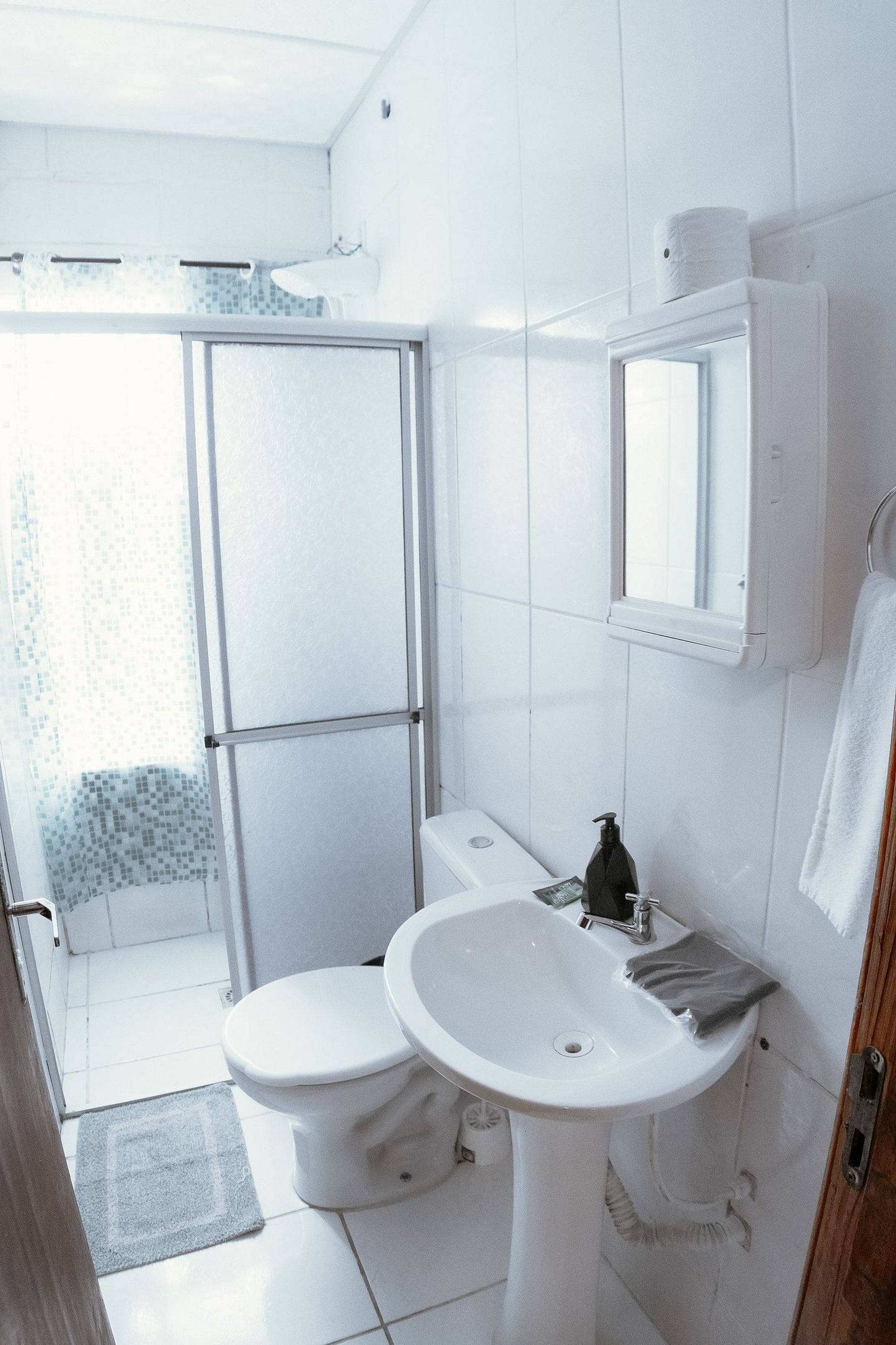 O banheiro é privativo e conta com toalhas de banho e rosto, além de shampoo 2 em 1 e sabonetes como cortesia.